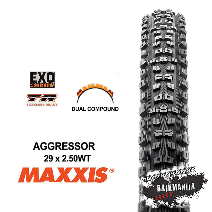 Plašč Maxxis Aggressor Exo DC TR 29×2.50WT (62a/57a) je zasnovan je za visoke hitrosti in omogoča vsestransko vožnjo po brezpotjih – blesti na vsem – razsutih progah ali težkih gorskih poteh.